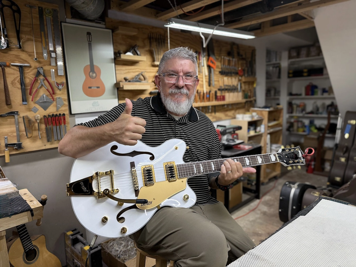 Small details can also transform an instrument. One Gretsch 5422TG owner came in frustrated by tuning issues and odd harmonics. After installing a roller bridge, upgrading the Bigsby, fitting Waverly tuners, and dialing in the geometry, he told me it felt more like a White Falcon than the mid-level guitar heâd started with.