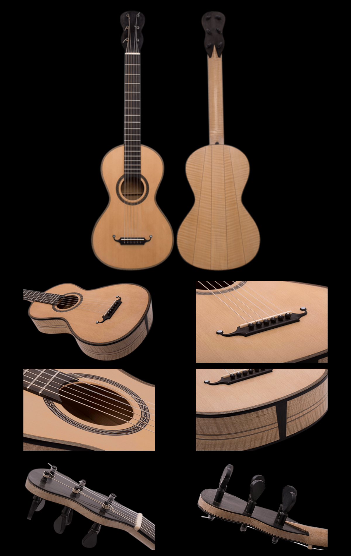 layer of high-grade Sitka spruce paired with curly maple. This is a purposeful structural approach using solid,