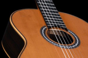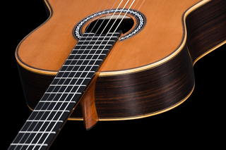 Inspired by a 1920s Domingo Esteso, the Cordoba Luthier C12-CD features several modern design elements such as lattice bracing and a raised fingerboard, which are normally only found on much higher priced instruments. We’re impressed with the caliber of construction and the quality of materials used in the guitar. This guitar has a very lively cedar top and produces deep sonorous basses and very sweet trebles with lots of sustain, a nice balanced mid-range too.