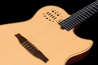 The Multiac Nylon Duet Ambiance features state-of-the-art custom electronics by Fishman, which allow the player to select between 4 individual mic settings. Choose between these blendable sound imaging mics via the 4-way switch. Ideal for players looking for an incredible amplified nylon string sound and feel in a live and loud band setting with virtually no feedback.