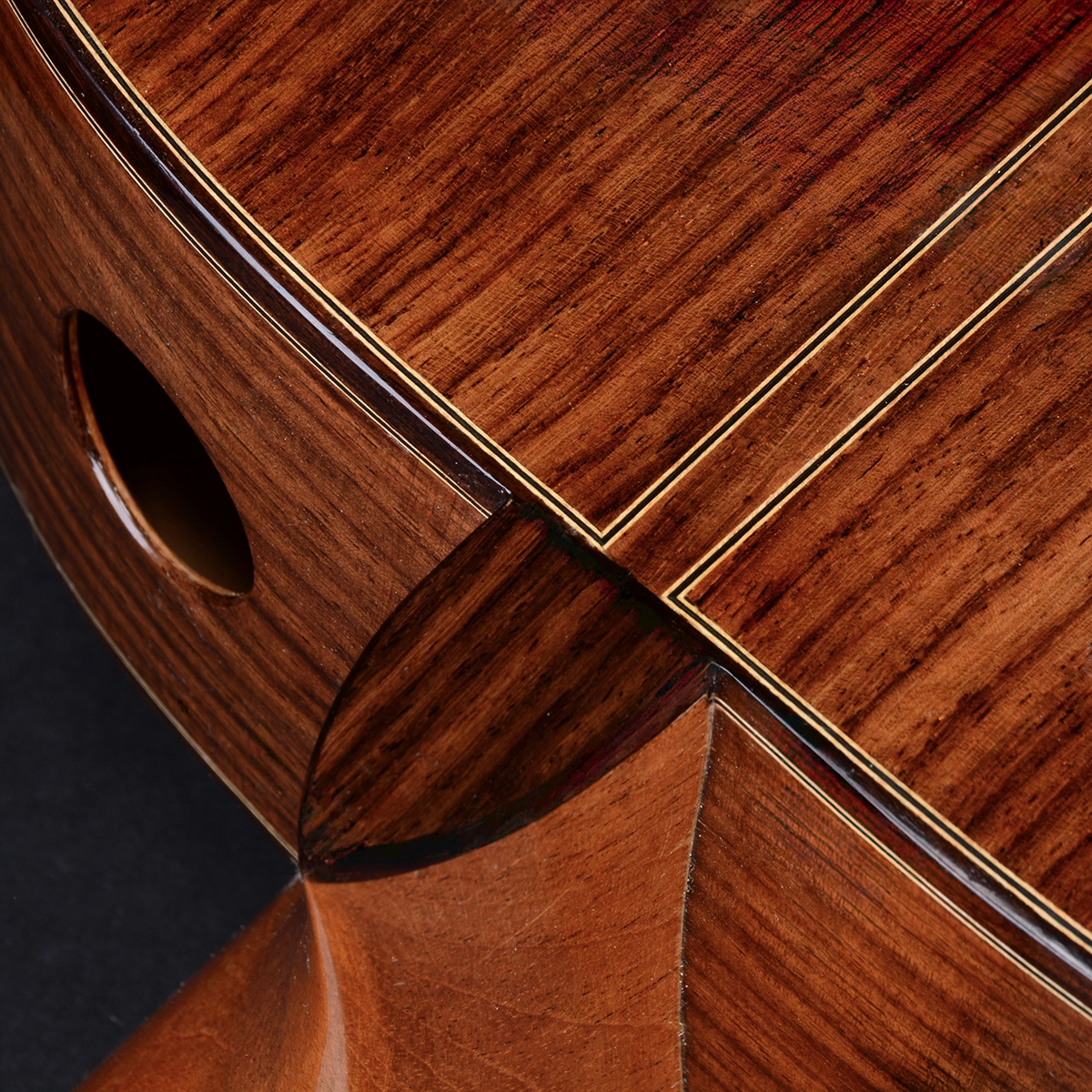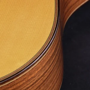 Sides are constructed of Indian rosewood laminated with a cypress lining and includes sound ports. The back is Indian rosewood.