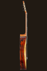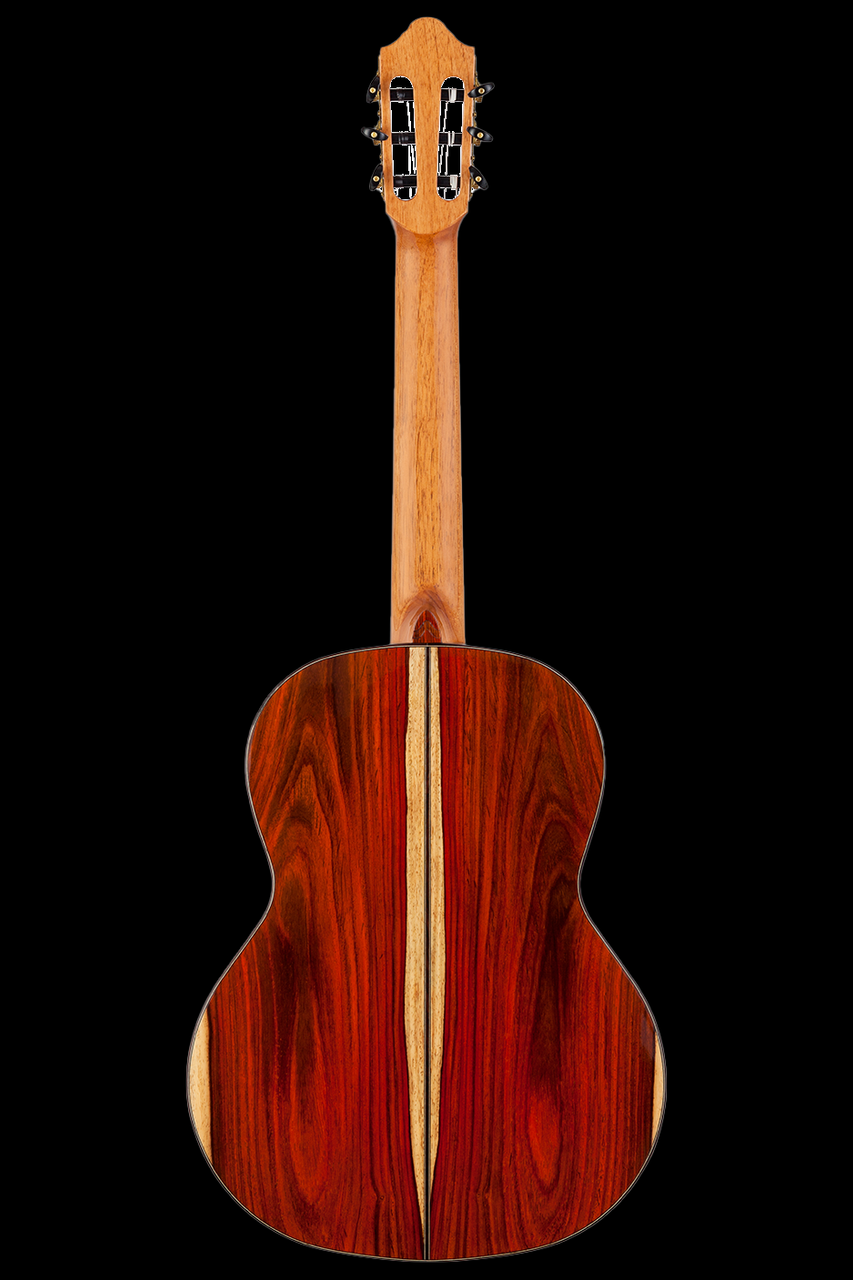 At the heart of the Solea is its solid red cedar top, delivering a warm, resonant sound that complements a variety of musical styles, from classical compositions to Brazilian rhythms. The solid cocobolo back and sides enhance this tonal depth, offering a bright and balanced response that projects beautifully on stage. An ebony fingerboard and bridge, along with a Honduras cedar neck, ensure smooth playability and durability, while the bone nut and saddle provide excellent tonal precision.