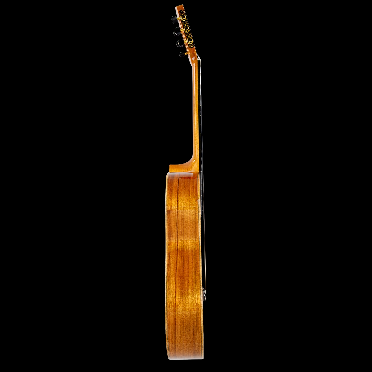 A Honduras cedar neck provides stability and a comfortable feel. The ebony fingerboard adds durability and definition, especially during fast left-hand work. Together, these features create a playing experience that feels predictable and responsive.
