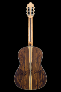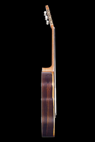 The Kremona 100th Anniversary model boasts premium materials, including a solid torrified cedar top for exceptional tonal brilliance and sustain. The solid ziricote back and sides add depth and warmth, while the Honduras cedar neck and ebony fingerboard ensure smooth, effortless playability. Thoughtful design elements like the ergonomic bevel and adjustable side sound monitor enhance comfort and provide a personalized auditory experience, making this guitar equally suited for intimate performances and concert stages. This guitar not only embodies Kremona’s commitment to craftsmanship but also serves as a versatile tool for artistic exploration. Perfect for classical purists and adventurous performers alike, it is a tribute to a century of innovation and artistry that continues to shape the future of fine guitar making.