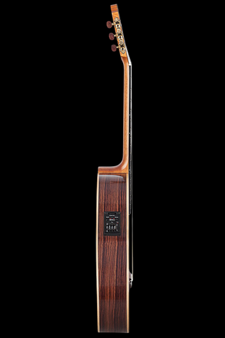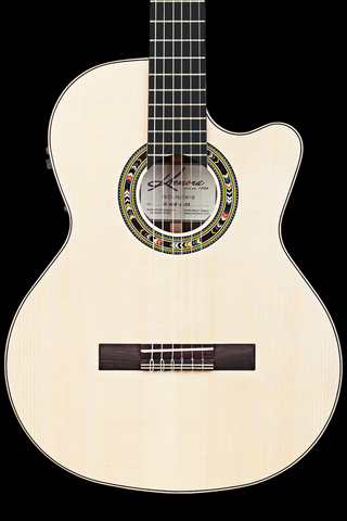 The Kremona Performer Series Fiesta F65CW-SB is a finely crafted acoustic-electric guitar that combines exceptional performance with stunning visual appeal. Built with a solid spruce top and solid Indian rosewood back and laminated sides, this model takes Kremona’s renowned design to a new level with its stage-ready cutaway body. Delivering a warm, resonant tone, the Fiesta F65CW-SB excels across a variety of musical genres, from classical and jazz to pop. The rosewood back and sides contribute to deep, rich bass tones, while the ebony fingerboard ensures smooth, effortless playability. Featuring a Fishman Prefix Pro-Blend preamp and dual-source pickup system, this guitar offers crisp amplified sound, with balanced lows and clearly defined midrange frequencies. Its 650mm scale 52mm neck width offers a comfortable, familiar playing experience, making it perfect for both live performances and studio sessions. With its elegant craftsmanship and versatile tone, the Fiesta F65CW-SB stands as a true blend of artistry and practicality for musicians seeking to elevate their sound and style.
