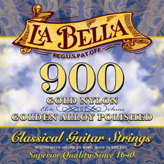 The 900 Golden Superior set contains gold nylon trebles and polished golden alloy wound basses. Especially designed for the concert performer, the smooth surface on the basses allows the player to shift positions without any noise or squeak. Highly polished, these basses are recommended for both studio recording and live performances.