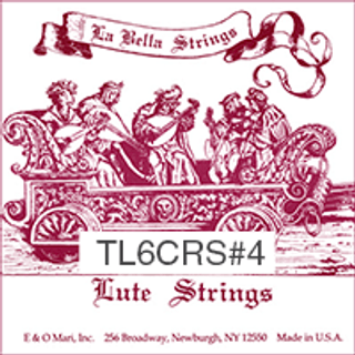 The La Bella TL6CRS#4 is a 6-course set of Renaissance tenor lute strings consisting of rectified nylon trebles, aluminum wound octaves, and silverplated wound basses (fundamentals).
