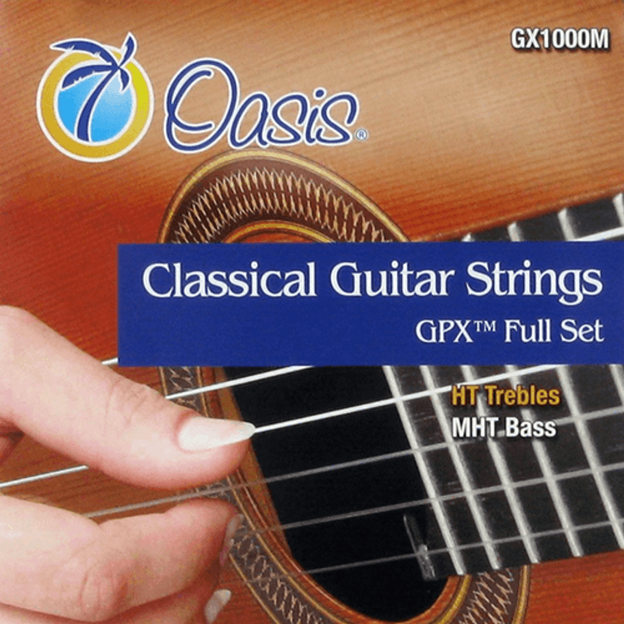 TheĀ Oasis GPX+ HT/MHT GX-1000MĀ set of classical guitar strings consists of long-life high tensionĀ carbon treblesĀ and medium-high tensionĀ Sostenuto basses. The GX-1000M set includes high endurance 1st string.