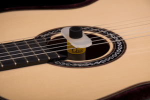 When mounted between the D and G strings in your guitar’s soundhole, the USA-made Oasis OH5 Plus+ Guitar Humidifier protects your instrument against hairline cracks that might result from drying out. What sets the OH5 Plus+ apart from many other soundhole-mounted humidifiers is its elegant anti-leakage design. Soundhole humidifiers that use foam or sponge to hold water may provide adequate defense against dry environments, but fail to protect the instruments from potential leakage from the humidifiers themselves. The Oasis OH5 Plus+ prevents water leaking into your guitar in two ways: